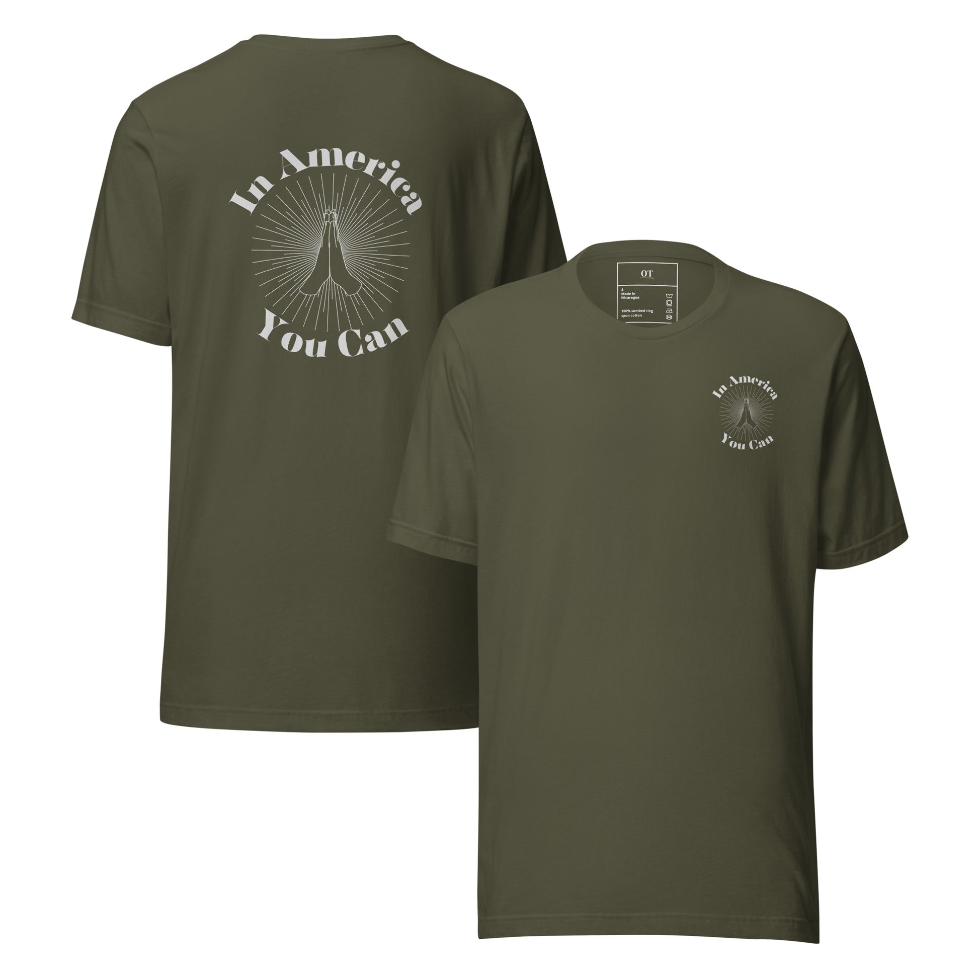 Show your American Pride and be incredibly comfortable in this soft, easy to wear, "In America You Can" t-shirt.