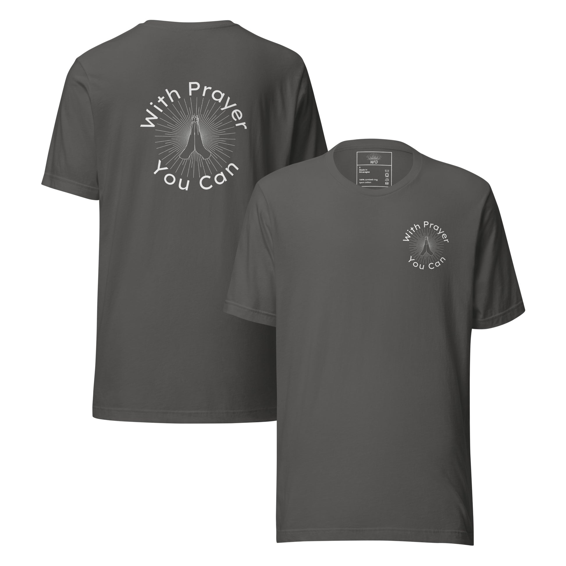 Show your faith and be incredibly comfortable in this soft, easy to wear, "With Prayer You Can" t-shirt.